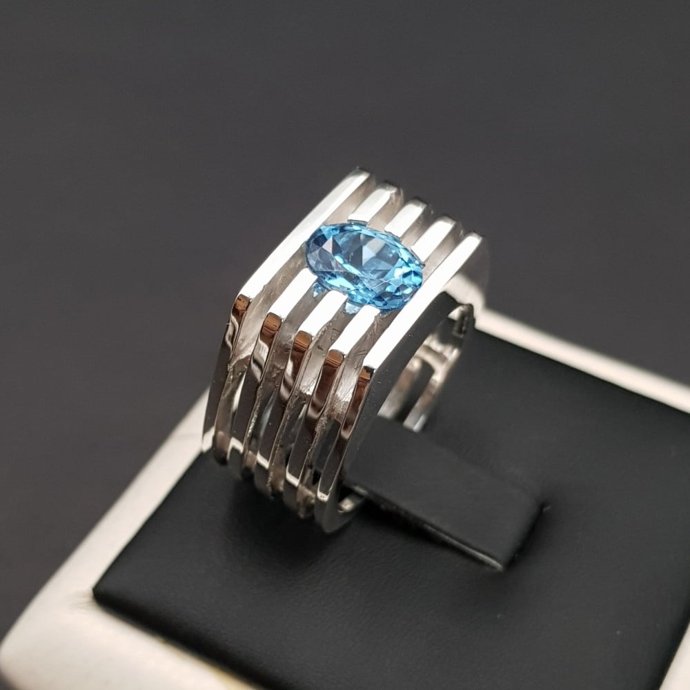 خاتم تصميم حصري مع حجر اكوامارين فضة 925