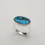 خاتم حجر الفيروز الطبيعي النيشابوري فضة عيار 925