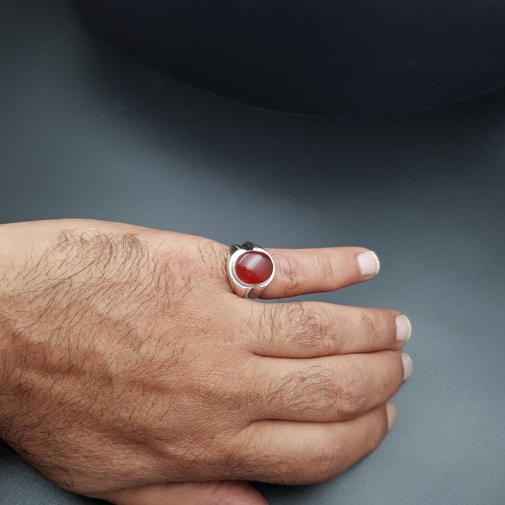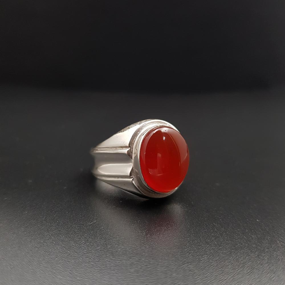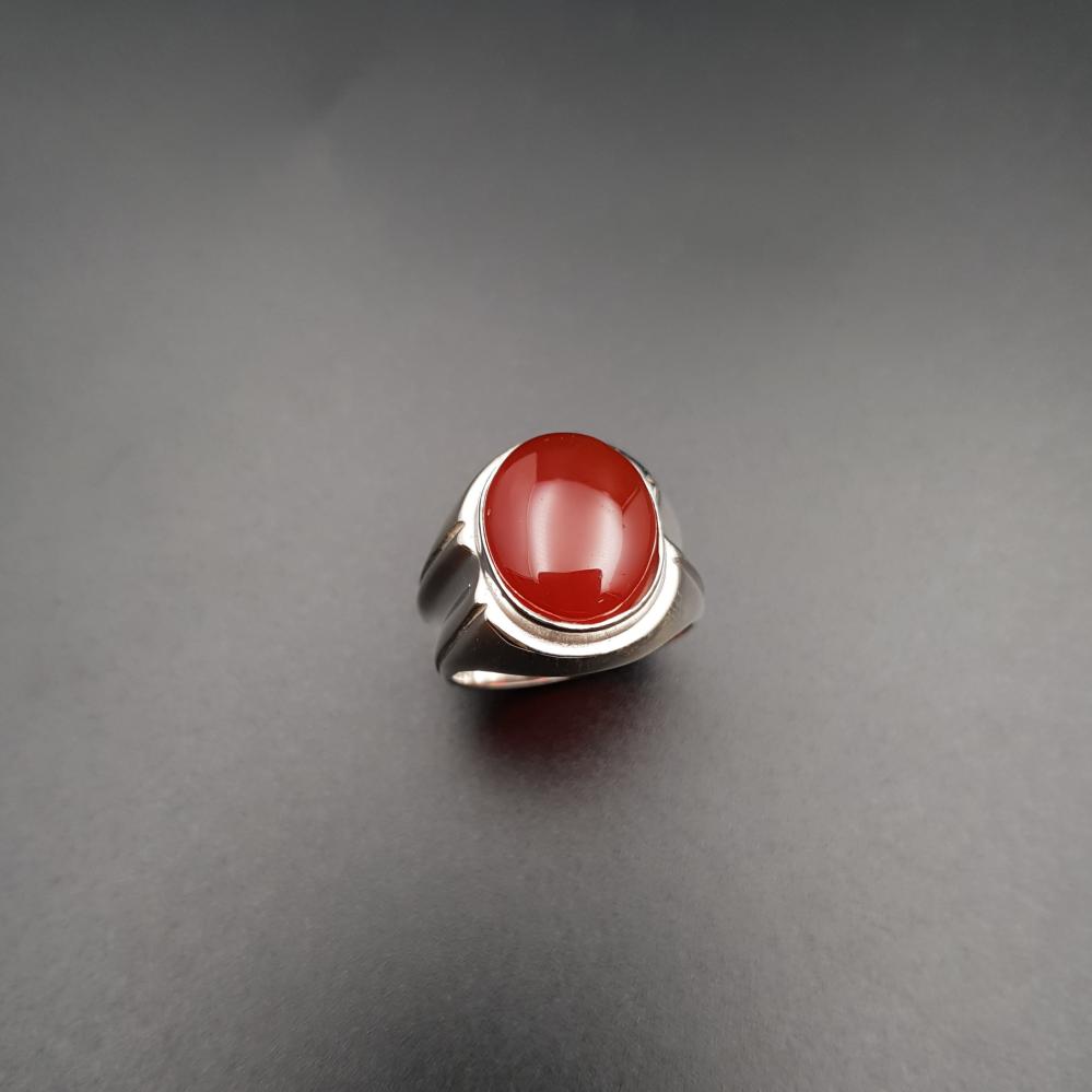 خاتم عقيق يماني طبيعي احمر فضة 925