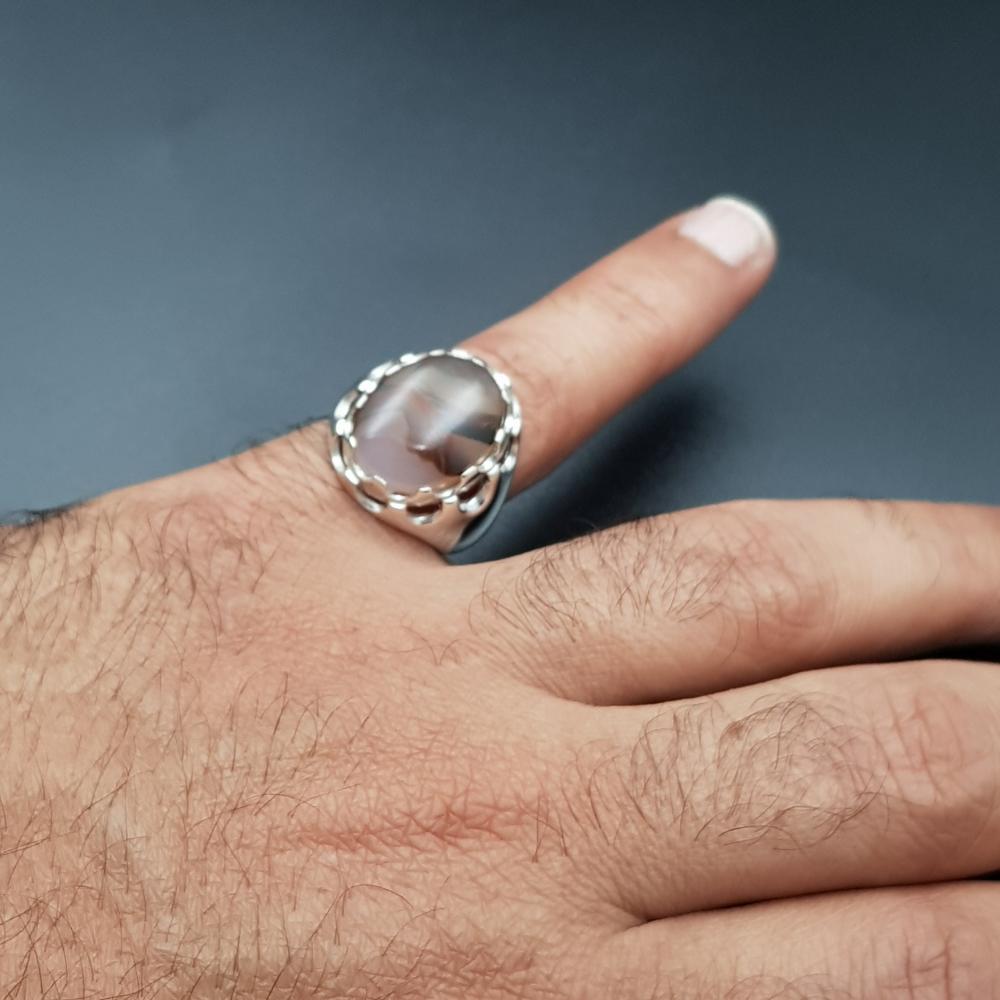 خاتم عقيق يماني طبيعي فضة عيار 925