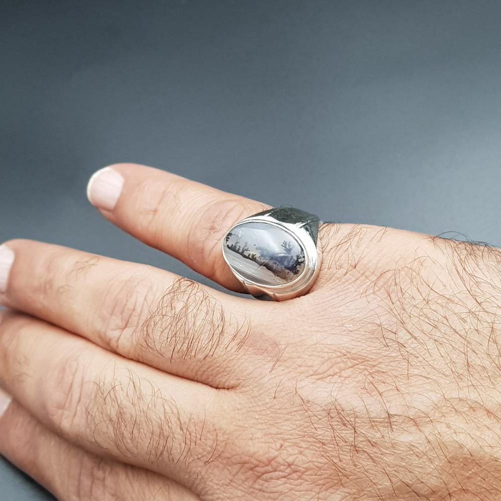 خاتم عقيق يماني مميز طبيعي فضة عيار 925