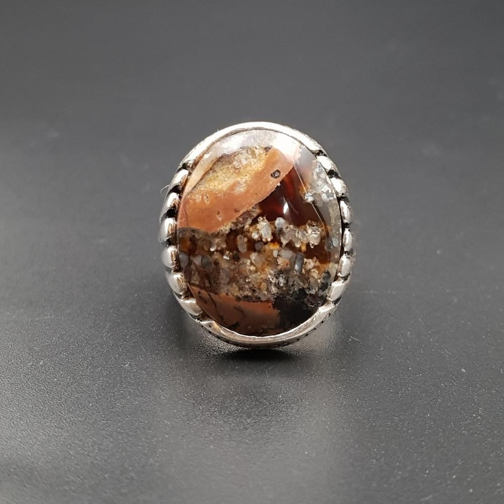 خاتم عقيق يماني مميز طبيعي فضة عيار 925
