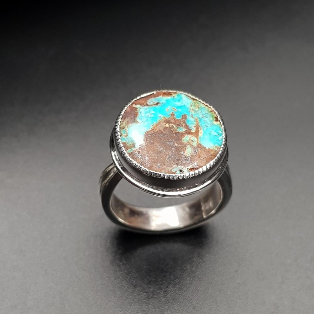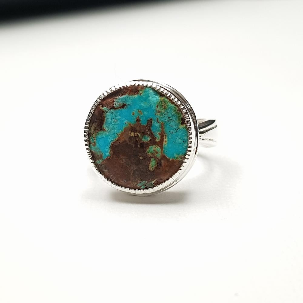 خاتم فيروز طبيعي نيشابوري فضة عيار 925